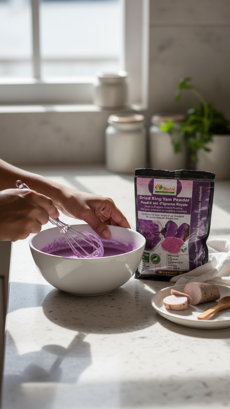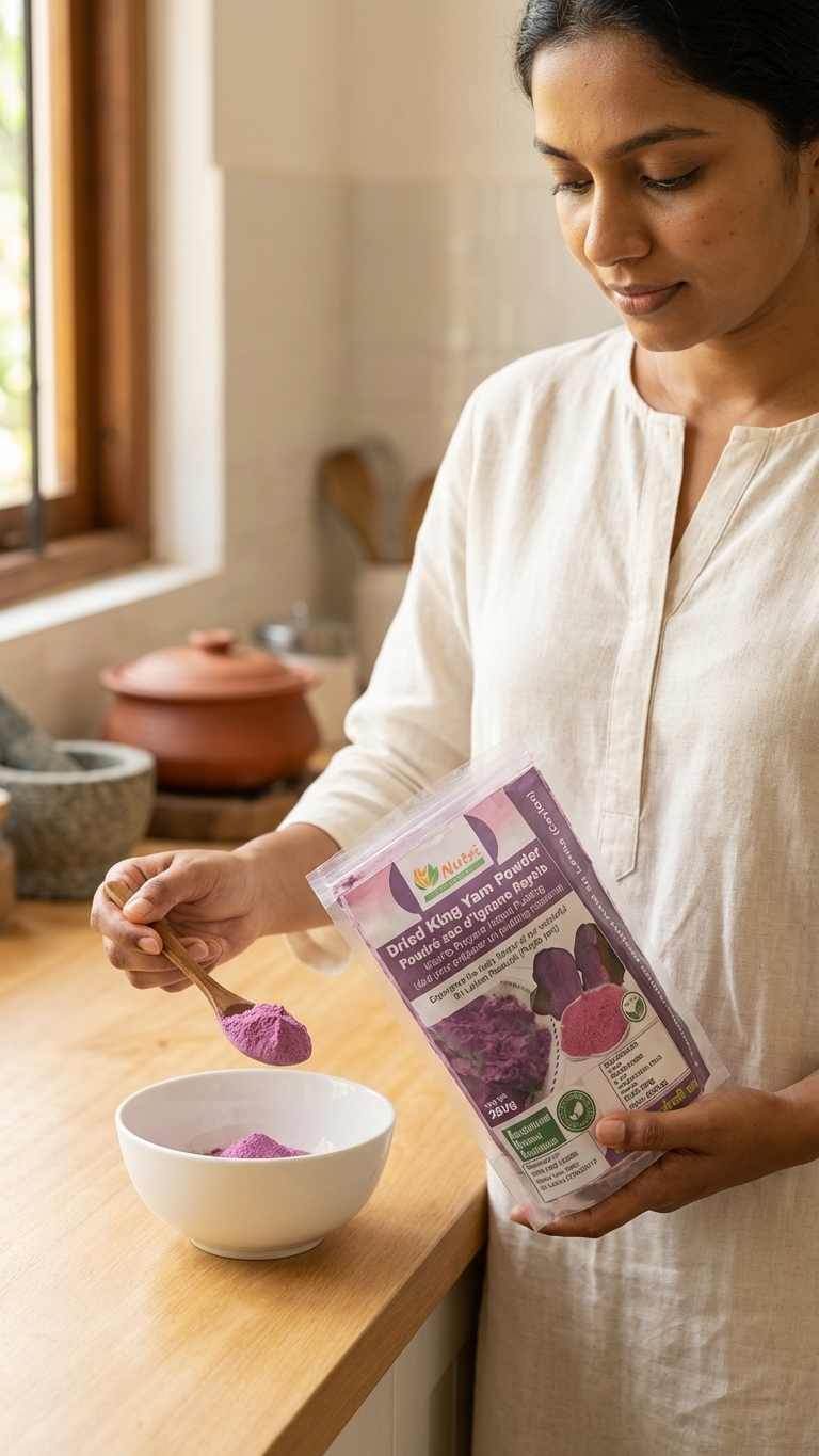 This Dried King Yam Powder is produced from carefully selected king yam, cleaned, dried, and ground using traditional processing techniques. Nutri Food Packers ensures hygienic handling and sealed packaging to maintain quality. Commonly used in traditional recipes and food preparations, this powder reflects regional food practices and local sourcing. Suitable for household cooking and traditional food use.